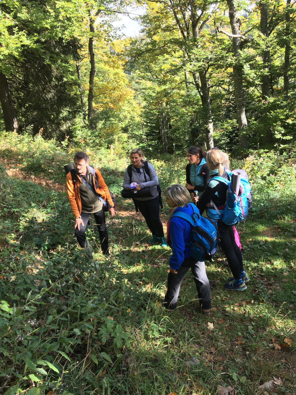 Dimanche 16 septembre 2018, départ de La verpillière à 7h30, un petit groupe de 12 yogis et yoginis en direction de la Haute-Savoie au Mont Salève, pour rejoindre Emilie Paquien guide de Haute Montagne et Prof de YOGA (formée par Lola). Emilie nous a concocté une très belle rando sur les chemins du Mont Salève et un programme de Yoga basé sur les 5 éléments : Terre, Eau, Feu, Air et Ether. Une très belle journée extraordinaire qui crée des liens et nous permet de mieux nous connaitre et nous apprécier ... Prochaine Rando Yoga au printemps 2019 ...